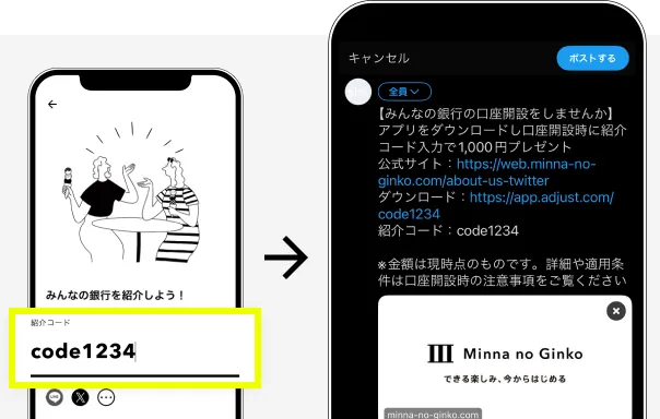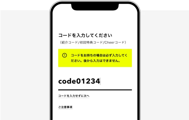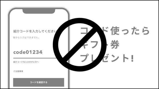・紹介する方は、紹介コード等の文言をアプリから送る際に、文言の編集を行わないでください。