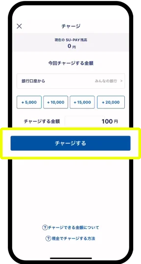 スーペイ支店の方は特典2のチャージに加え、さらに1万円以上をSU-PAYアプリへチャージ
