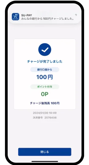 みんなの銀行スーペイ支店からSU-PAYアプリへ合計1万円チャージでトライアルポイント1,000円相当プレゼント