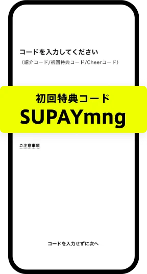 ②コード入力画面にて、スーペイ支店専用の初回特典コードやお友だち紹介コードなど、何らかのコードを入力※
