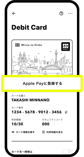 - みんなの銀行デビットカードは、Google Payのタッチ決済が利用できません。
