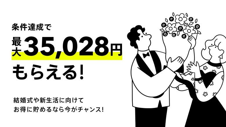 期間中に「結婚式」「指輪」「ハネムーン」「新生活」ボックスをいずれか1つ以上新たに作成し、それらの合計残高が2026年8月31日(月)23時59分時点で100万円以上