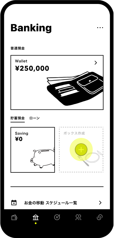お金の管理には、みんなの銀行のボックス(貯蓄預金)機能が便利です。みんなの銀行で銀行口座を開設すると、貯蓄預金のなかに仮想のボックスを作れます。