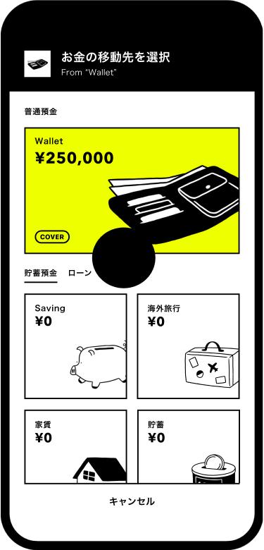 ボックス(貯蓄預金)は、ウォレット(普通預金)のお金を整理・整頓するためのもので、目的や用途に応じて、最大20個まで作成可能です。ボックス(貯蓄預金)の使い方の具体例を見てみましょう。