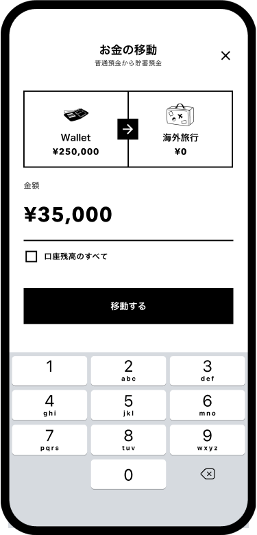 1ヶ月の予算分の金額を入力し、お金をボックスへ移動します。