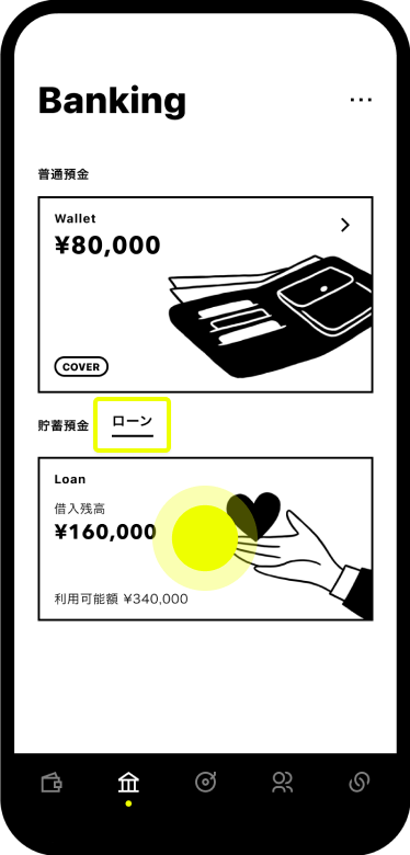 「Banking」画面で「ローン」をタップし、「Loan」をタップ