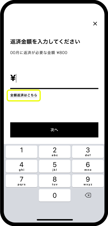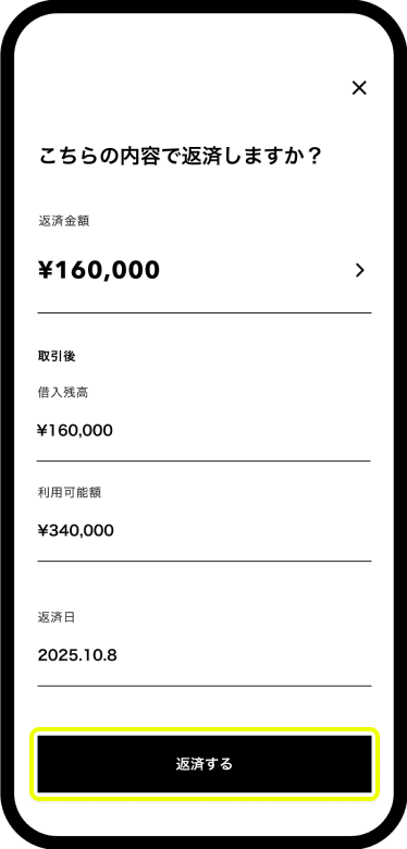 返済内容を確認し、「返済する」をタップすれば手続き完了