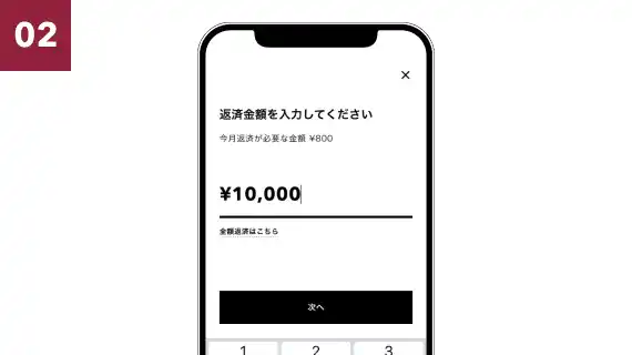 返済金額入力:『今月返済が必要な金額』を確認し、返済金額を入力。
