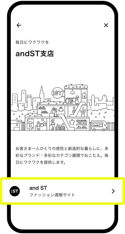 グローバルワーク、ニコアンドなど50ブランド以上の公式ファッション通販サイト「and ST」とのパートナー支店。「and ST」でのお買い物でわくわくとお得を提供するためのサービスです。