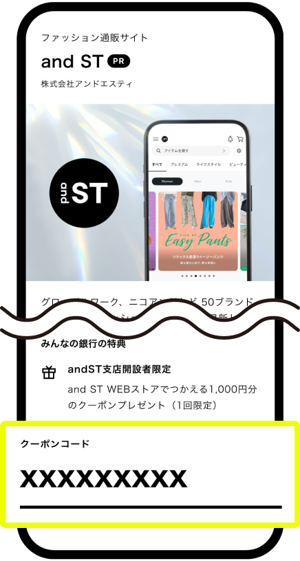 「and ST WEBストア」で使える1,000円分のクーポンプレゼント