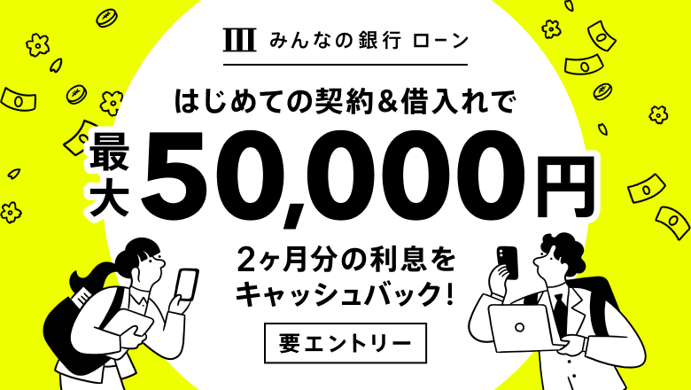 - 期間中に所定のフォームからエントリー&みんなの銀行ローンをはじめて契約いただいた方が対象です。