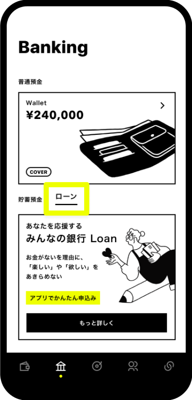 「Banking」画面で「ローン」をタップし、「もっと詳しく」をタップします。