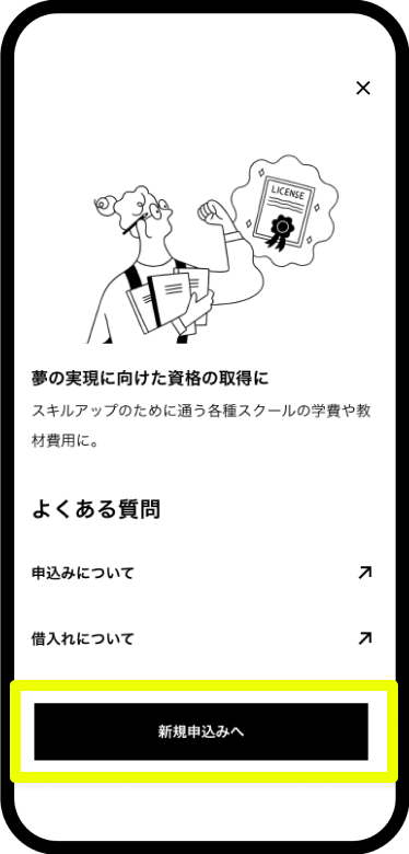 「新規申込みへ」をタップし、画面の指示に従って進んでください。