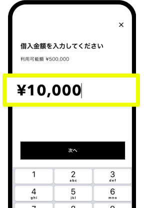 借入金額を入力します。内容を確認の上、「借入する」をタップすれば完了です。